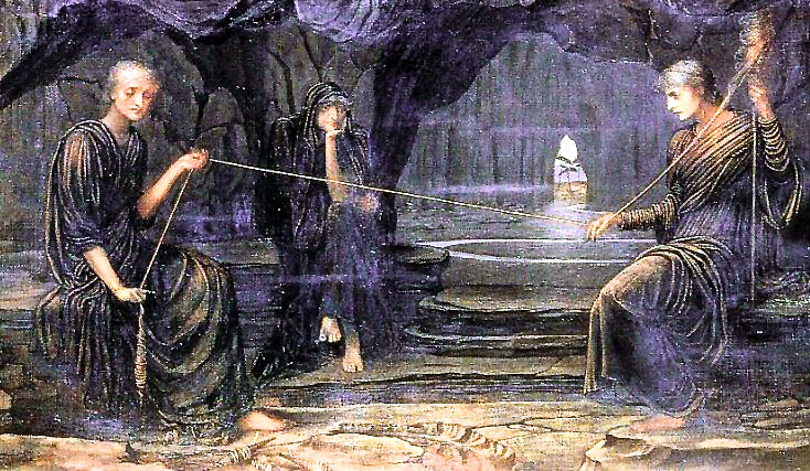 As Moiras eram tradicionalmente três: Cloto, Láquesis e Átropos. Seus nomes refletem com clareza suas funções cósmicas: Cloto (Κλωθώ) fiava o fio da vida; Láquesis (Λάχεσις) media sua extensão; e Átropos (Ἄτροπος), “a inflexível”, cortava o fio, determinando a morte. Segundo a Teogonia de Hesíodo, as Moiras podiam ser filhas da Noite (Nyx), o que lhes conferia um caráter primordial e anterior à ordem olímpica, ou filhas de Zeus e Têmis, interpretação que as insere numa estrutura cósmica mais juridicamente ordenada (HESÍODO, 2007).